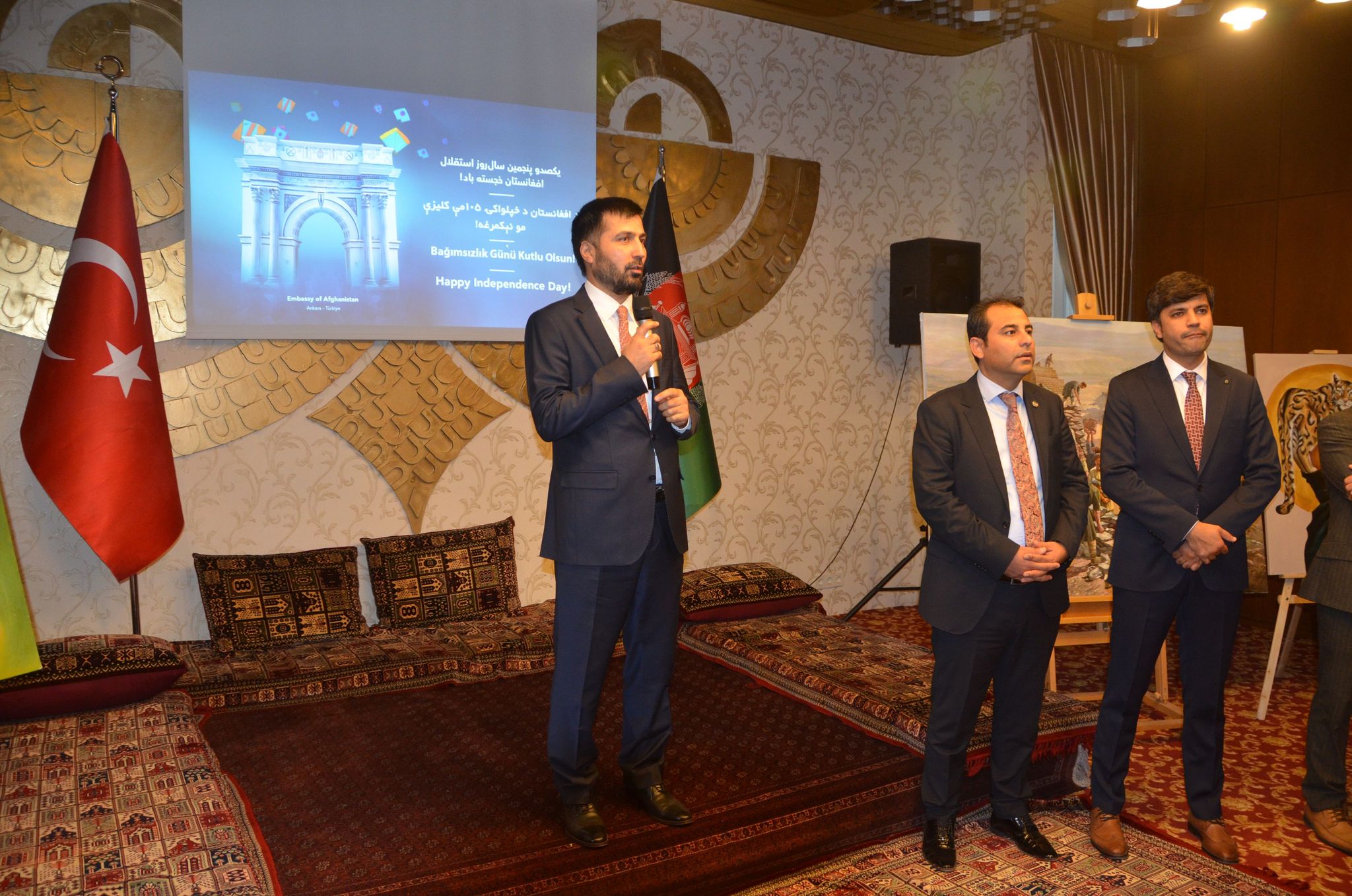 Afganistan Ankara Büyükelçisi Amir Mohammad Ramin, Afganistan’ın Bağımsızlık Günü vesilesiyle gerçekleşen, Türkiye’de bulunan Afgan sanatçıların Afganistan Kültürel Sergisine katılan herkese teşekkür etti.